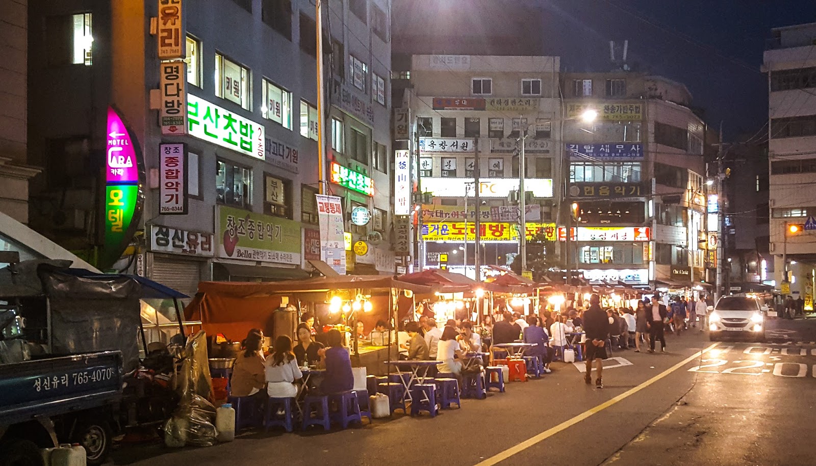 Мне, конечно, нравятся сверкающие районы вроде Каннама, и я даже люблю дистиллированный (как будто они каждую травинку там специально моют) ручей Чхонгечхон, и вылизанная площадь перед мэрией Сеула тоже хороша. Но чтобы почувствовать настоящую жизнь и увидеть корейцев в их любимой атмосфере уютной дружеской встречи, придется отказаться от комфорта открыточных мест.